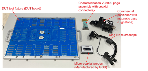 Measuring the ATE PCB test fixture is a critical step that can save the test engineer a great deal of time later during initial application turn-on. This is especially critical for applications where test fixture S-parameters are required for the de-embedding process. Different probing approaches are possible to address this challenge, but because of the specific mechanical design associated with an ATE platform, using a customized probing setup provides the best cost/capability trade-off. Advantest has developed this setup in a kit that is easily assembled and implemented to accommodate a user’s specific requirements.