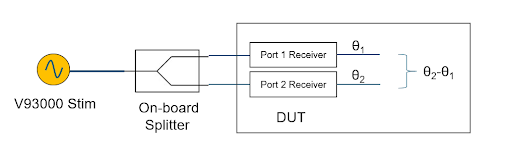 V93000 SmarTest 8 software contains a UWB demodulation library and can analyze a UWB signal in the time and frequency domains and measure such items as the transmit PSD mask, transmit center-frequency tolerance, baseband impulse response, chip clock rate, and chip carrier alignment. To enable rapid test-data analysis, SmarTest 8 supports hidden uploads of captured waveforms and multi-threaded background processing of previously captured data while simultaneously capturing the next measurement. In addition, standard existing SmarTest 8 features can make receiver and ToF-related measurements. Finally, AoA tests can be performed by signals of different phase to different receiver ports, as shown in Figure 5.