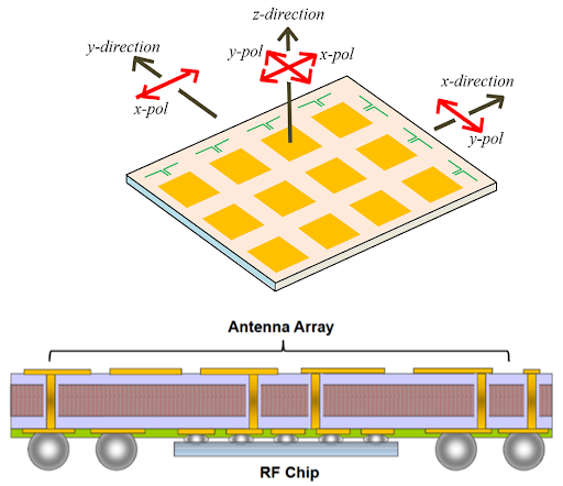 For the handset, these AiP modules will usually have an array of dual-polarized patch antennas for top firing and, in some instances, an array of dipole antennas for side firing (Figure 1).