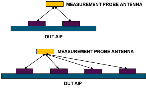 Figure 4. In this example, the distance from the measurement antenna to the different antenna array elements on an AIP DUT differs.